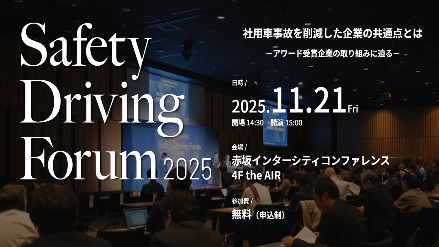 当協会が実行委員として参画している「Safety Driving Award 2025」の受賞企業の取り組み事例をご紹介するイベント「Safety Driving Forum 2025」の参加申込が開始されましたのでお知らせいたします。